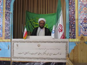 برپائی میزخدمت و سخنرانی مدیر آبفای قهجاورستان در نماز جمعه