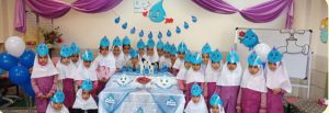 این جشن به پاس یاد گرفتن کلمه آب به عنوان نخستین واژه ای که دانش آموزان یاد گرفته اند در محل نماز خانه این آموزشگاه برگزار گردید.