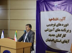 اضافه می شود دوره های توجیهی بدو خدمت کارکنان غیر رسمی آبفای استان اصفهان چهارم اردیبهشت ماه آغاز شد که در نخستین روز این دوره شرکتکنندگان با تاریخ شرکت آب و فاضلاب استان اصفهان آشنا شدند و مهارتهای مرتبط با انجام مکاتبات اداری را فرا گرفتند.