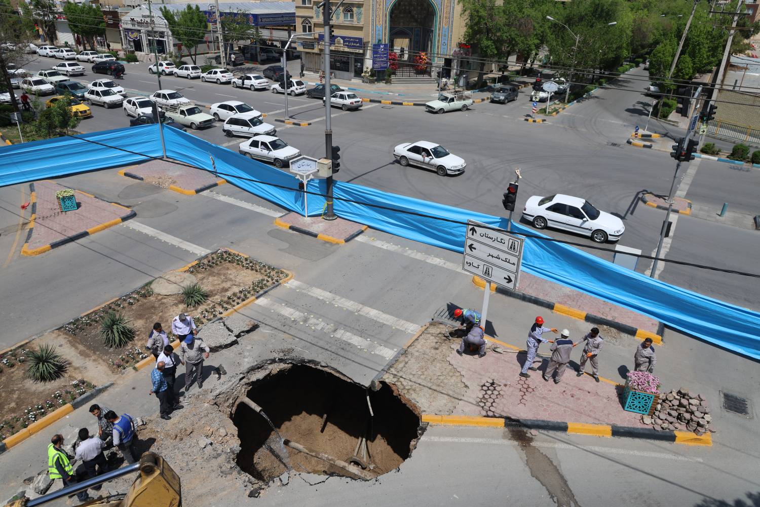 این حادثه بر اثر ورود آب باران به حوضچه فیبرنوری شهرداری و تخریب و سقوط آن بر روی سقف لوله فاضلاب ایجاد شده و حفرهای به عمق 6 متر به وجود آورده است.