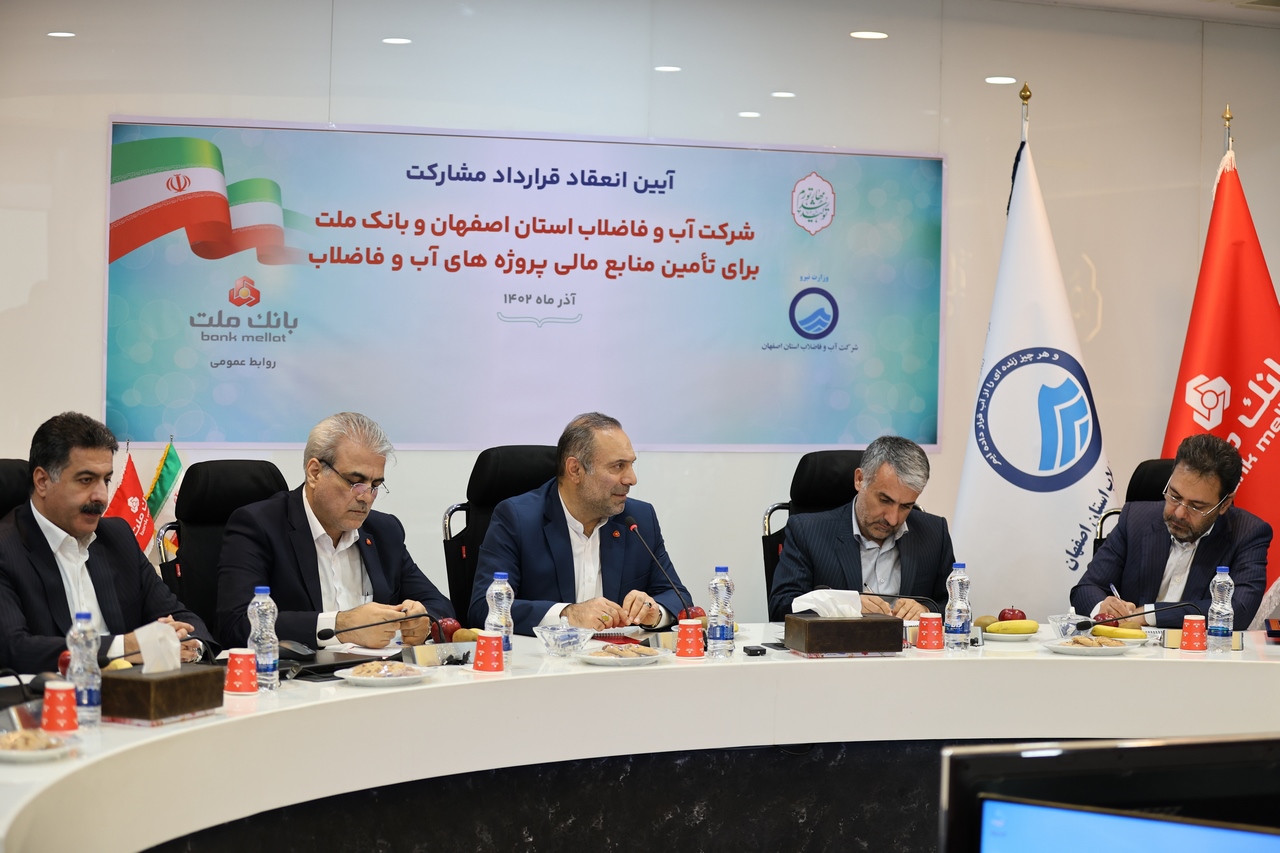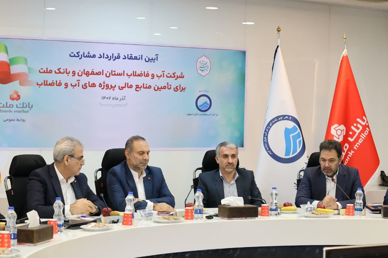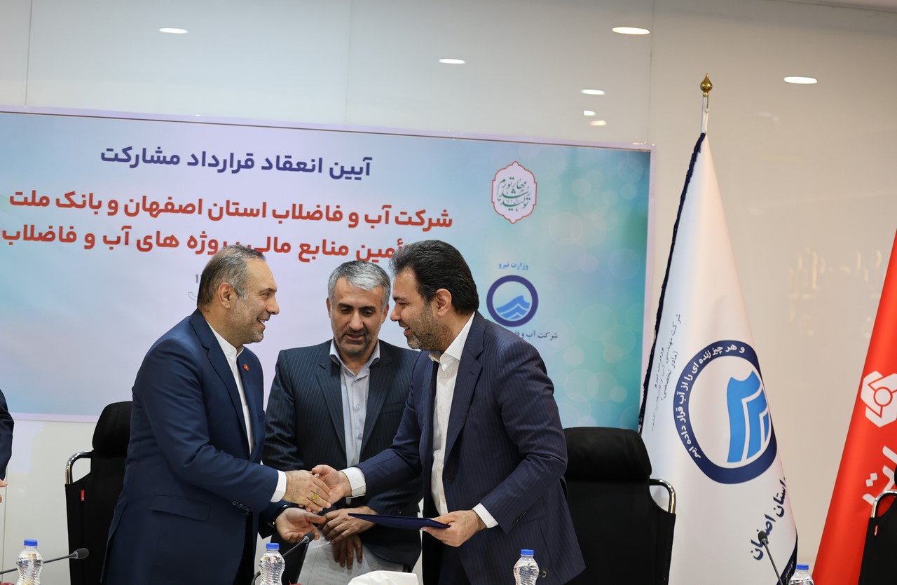 انعقاد قرارداد مشارکت آبفای استان اصفهان و بانک ملت برای تامین منابع مالی پروژه های آب و فاضلاب